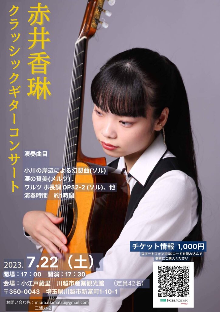 国内のコンクールで数々の受賞を重ねる注目の若手ギタリスト赤井香琳さんをお招きしてクラシックギターコンサートを開催します。